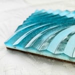 Three-dimensional waves shimmer in the light and offer a peek into the white sandy floor below. Captured in an elegant square shape, the crests of the waves are level so your drink can rest securely on top. Each coaster is finished with a cork bottom for grip and protection of your household surfaces.